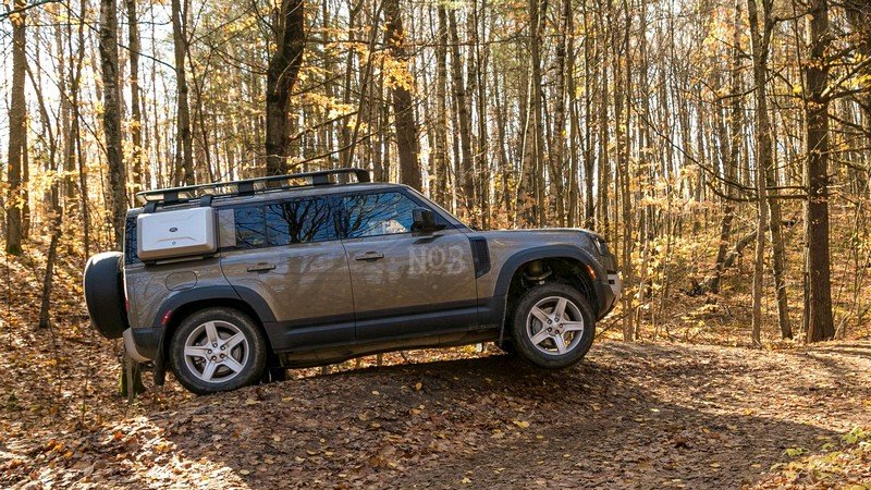However, as good as the air suspension is, it still cannot provide the same level of articulation as a Wrangler Rubicon, with its electronically actuated sway bar disconnected. As a result, the Defender will have more time with a wheel uselessly in the air instead of gripping terra firma. The Defender could also benefit from a more aggressive all-terrain tire option.
