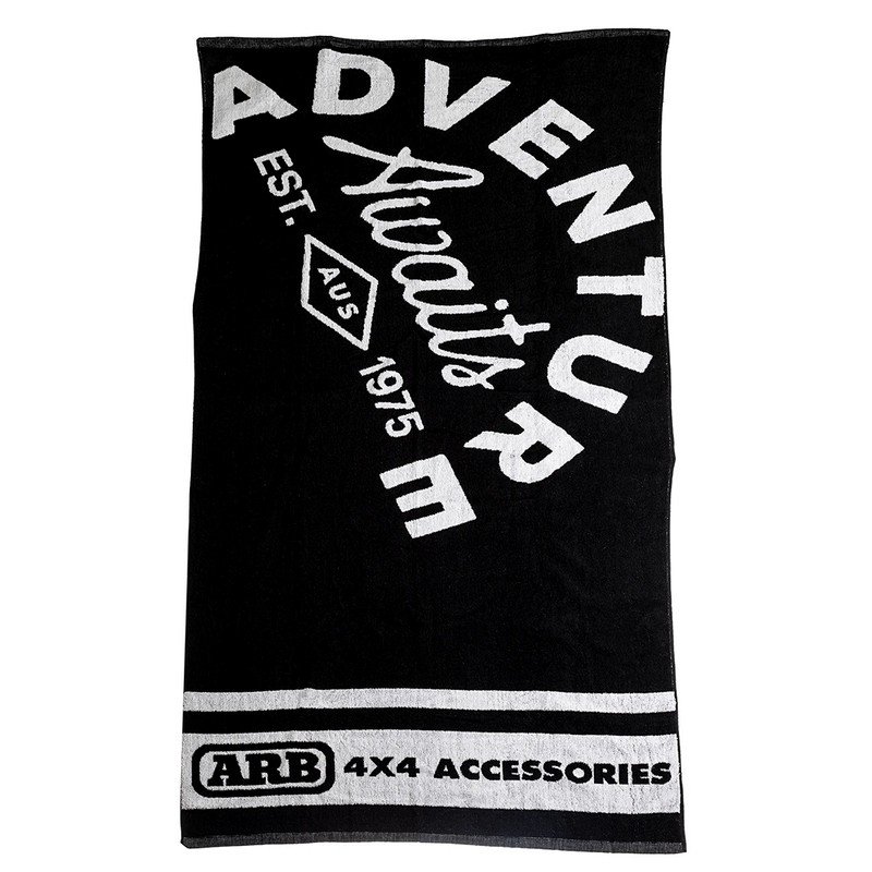 Perfect for drying yourself off after testing the water depth ahead, taking a dip in an outback oasis or simply enjoying a day at the beach. Manufactured from 100% cotton, this extra large towel features a handy corner zip pocket for storing valuables. Coming in a modern black and white, the towel features our large Adventure Awaits logo blazoned across the left face and ARB 4×4 Accessories logo in a white double strip on the right edge. Packaged inside a handy mesh bag that can double as a laundry bag or travel bag for the towel.