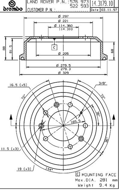 | Max diameter | 281mm |