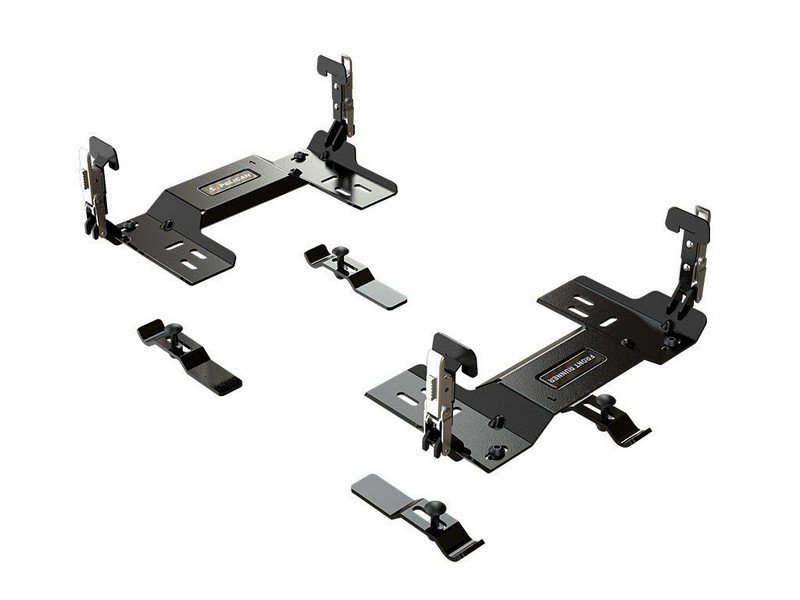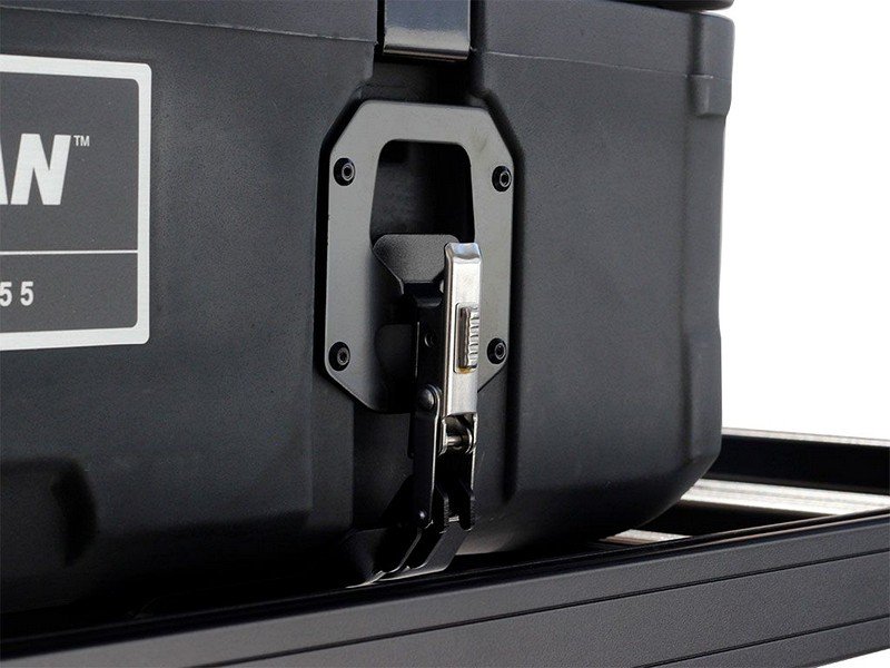 – A pair of brackets that mount to the top your Front Runner rack and firmly secures your Pelican Saddle Case using the included latches.