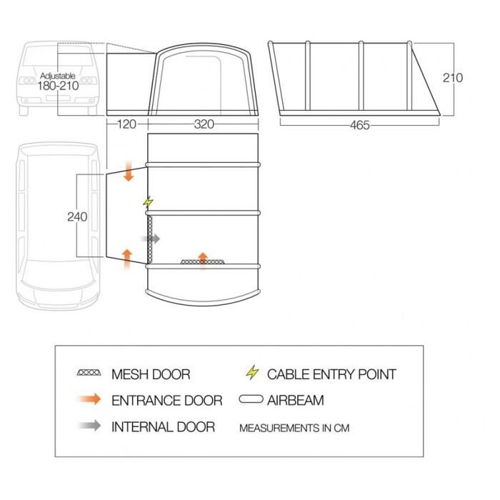 – Cable entry point – Neatly feed electrical cables into your awning allowing you to easily keep your camping appliances powered