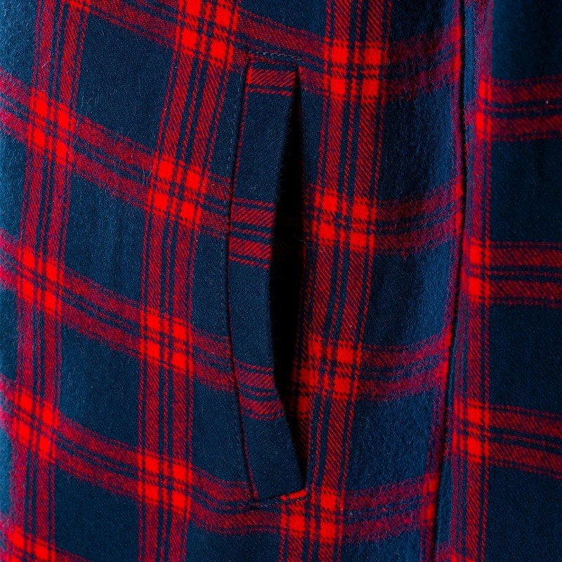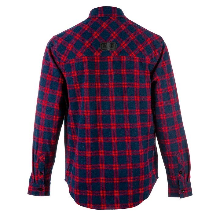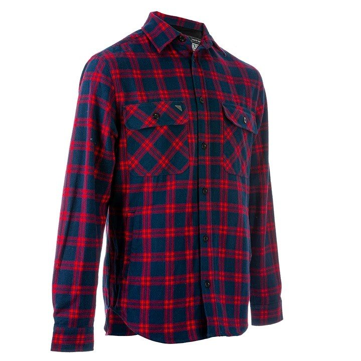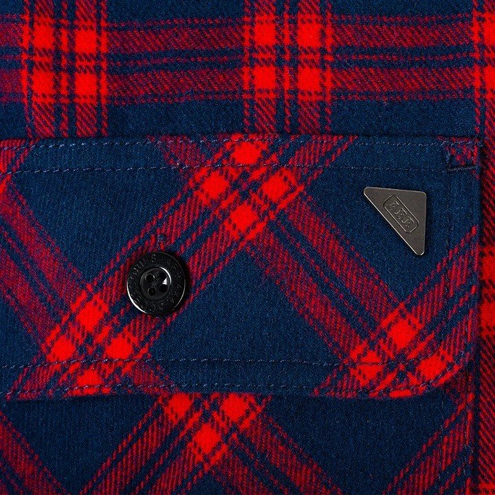 The new red Nomad flannie is sure to turn heads with a bold blue and red check print.