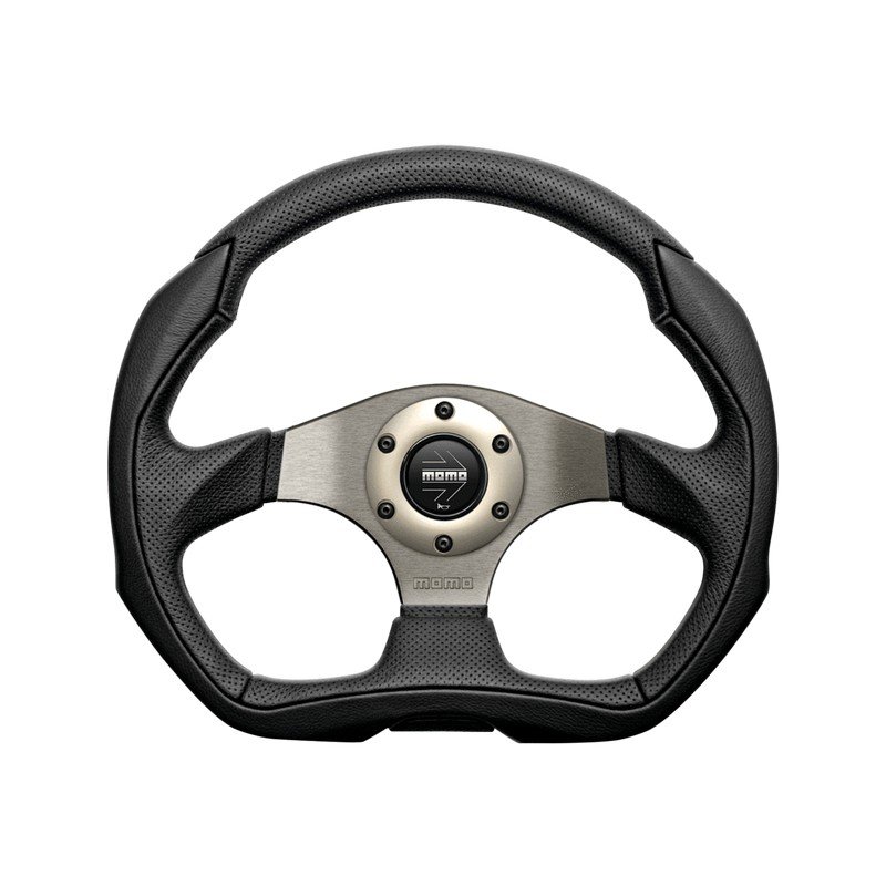 Features include an anatomical grip, a flat bottom and a mixture of full-grain and air leather with a MOMO Italy centre pad.